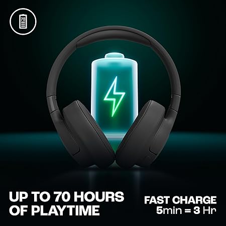 JBL Tune 770NC Wireless Over Ear ANC Headphones with Mic, Upto 70 Hrs Battery, Speed Charge : 5 min Charge Gives up to 3H of Playback, Google Fast Pair, Dual Pairing, BT 5.3