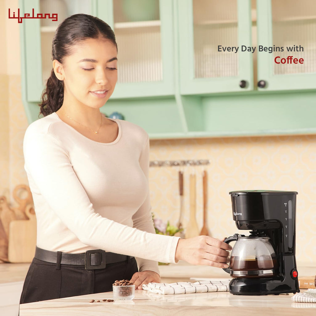 A convenient drip coffee maker that brews up to 5 cups of coffee at a time.
