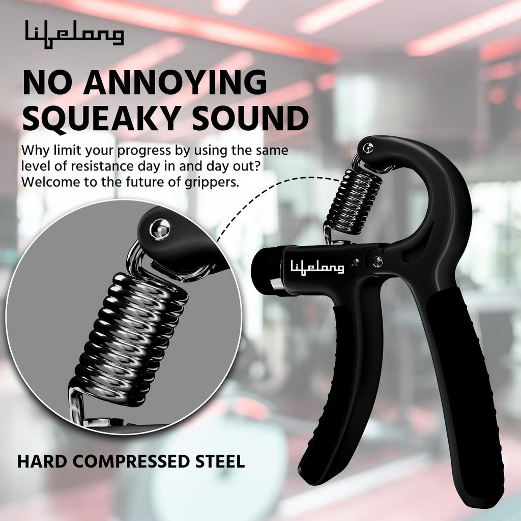 An adjustable hand grip exerciser designed to improve grip strength and endurance.