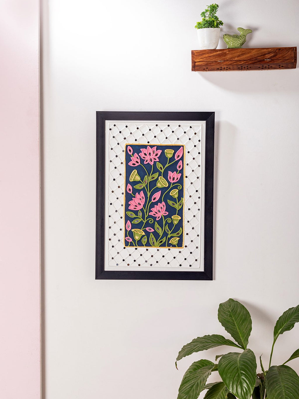 Combining the beauty of Lippan Art with the richness of Pichwai designs, this wall frame showcases mesmerizing geometric and lotus patterns. The intricate craftsmanship reflects the harmony between two celebrated Indian art forms. Ideal for enhancing any space, this frame brings a cultural touch and a unique artistic flair to your home décor.
