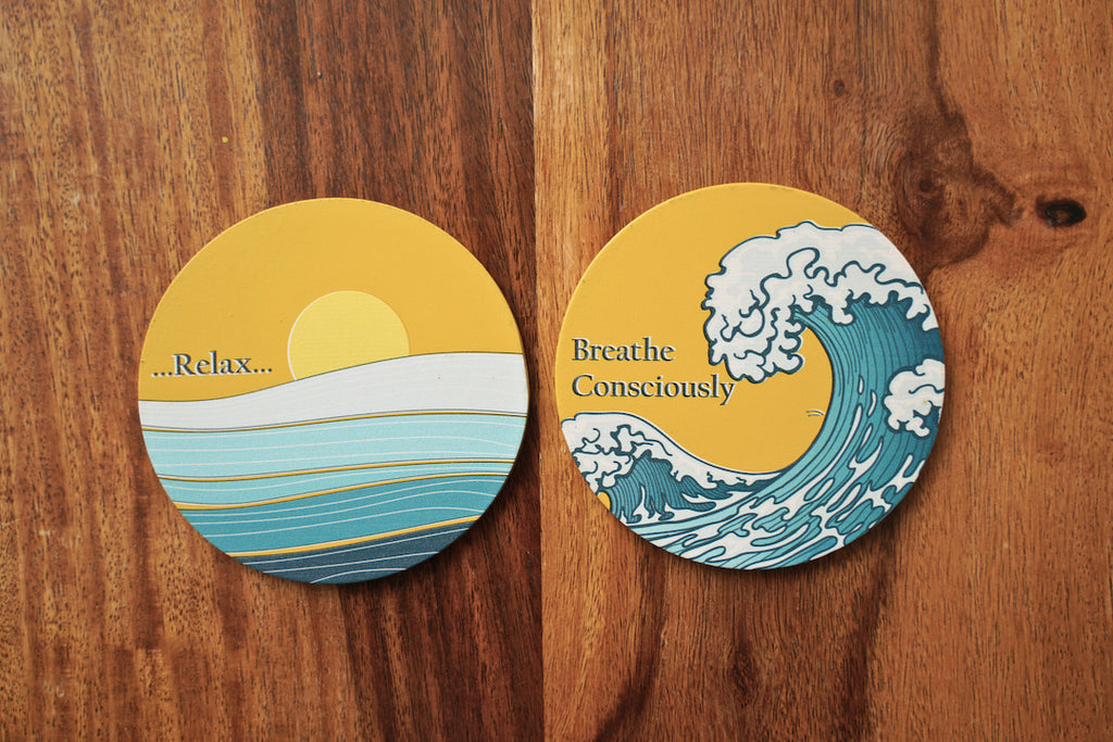 How to use:The calm coasters help you to relax. Whenever you see them, just take a few deep breaths and experience/ observe your thoughts ebbing down and take you to a state of tranquility.”
