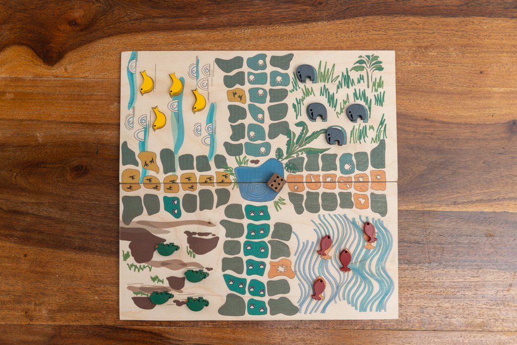 The game continues till one of the players has all tokens in the pond.