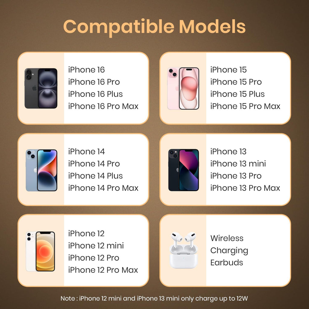 Experience the ultimate charging solution with our 15W Fast Wireless Charger, designed to deliver rapid and efficient power to the latest iPhone models and other Qi2-compatible devices. Featuring MagSafe technology, it ensures stable and secure magnetic alignment for effortless charging. Dual-purpose functionality includes a built-in night LED light with 3 adjustable brightness levels, perfect for relaxing, reading, or sleeping without disrupting your rest. Tailored for iPhone 12/13/14/15/16 series, this charger combines sleek design with premium performance, making it ideal for Apple enthusiasts. Its compact and lightweight build is perfect for your bedside table, office desk, or travel bag, offering convenience wherever you go. Prioritizing safety, it includes advanced temperature control, overcurrent protection, and short circuit safeguards, ensuring reliable and worry-free charging every time.